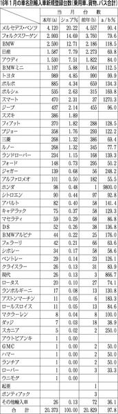 【16年1月の車名別輸入車新規登録台数(乗用車、貨物、バス合計)】