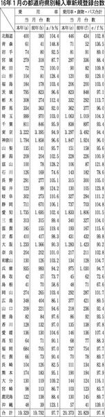 【16年1月の都道府県別輸入車新規登録台数】