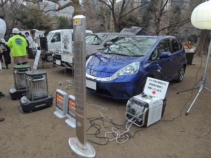 東京都と千代田区による「平成27年度合同帰宅困難者対策訓練」が8日、東京駅や飯田橋駅などの駅周辺で実施された。トヨタ自動車、ホンダ、三菱自動車、日産自動車が参加。東京駅近くに設置された情報機動ステーションへの給電のほか、炊き出しを行った日...