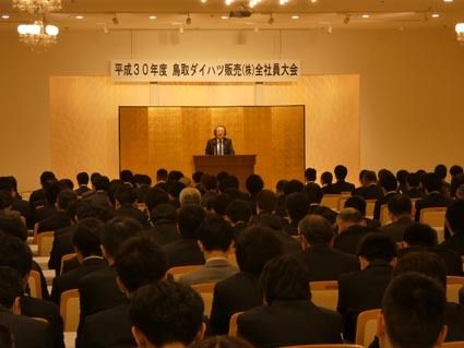 【鳥取】鳥取ダイハツ(村川雅則社長)は4月24日、米子市のホテルで「全社員大会」を開いた。今年度の経営方針を発表し、優秀社員を表彰した。 村川社長は「わが社の強みを生かして他社と差別化したい。ダイハツ車の安心と安全を存分に訴求し、イメージ...
