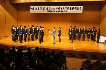 【青森】青森トヨペット(安田●社長)は1日、青森市の青森県民福祉プラザで「2016年グルーミン・ガッツ大作戦全社発表会」を開催した。店舗の業務改善や店長のマネジメント能力向上を目的に毎年実施するもので、今年で10年目。店舗が抱える課題の現...