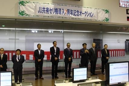 【水戸】茨城県中古自動車販売商工組合(JU茨城、堀江知弘理事長)は16日、「共有セリ機導入7周年記念オークション(AA)」を開催し、出品台数は約900台、成約率は今期最高の約74%と好実績を挙げた。 開会セレモニーで堀江理事長は「共有セリ...