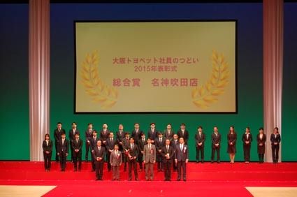大阪トヨペット(横山昭一郎社長、大阪市西区)は8日、大阪市内で優秀な成績を上げた店舗や従業員を表彰する「社員のつどい(2015年表彰式)」を開催した。最高の栄誉とされる総合賞には名神吹田店(乾豊店長)が輝き、4年連続受賞の快挙を成し遂げた...