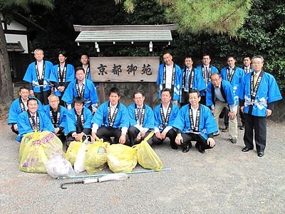 京レン協と青年部会、御所周辺を清掃