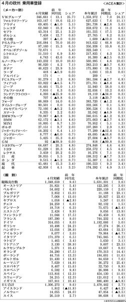 18年4月のメーカー別欧州乗用車登録は、VWグループ、ルノーグループ、フォードが2桁増と好調だった。PSAグループもプジョーが2桁増となったほか、オペル/ボグゾールがグループ入りして上乗せされていることから7割増を記録した。ダイムラーグル...