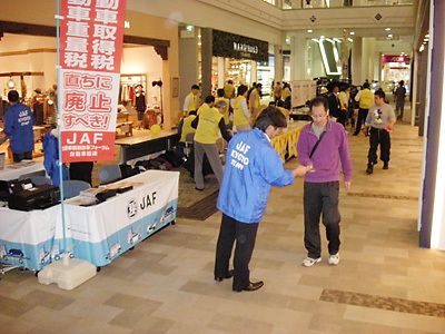 近畿の自動車関係団体は12日のJR草津駅を皮切りに、近畿6府県の主要ターミナルなどで、過重な車の税負担軽減を訴えるチラシを市民らに配った。 草津駅では午後4時から2時間、自動車取得税と重量税を廃止すべきと記したチラシを配布した。13日(土...