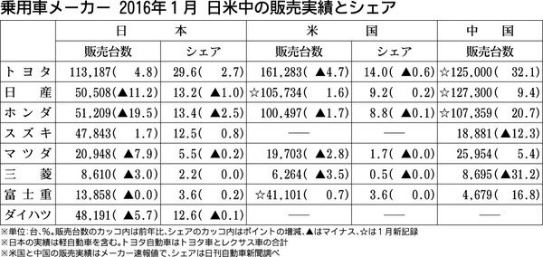 日本の乗用車メーカーによる1月の日本、米国、中国における販売台数がまとまった。日本市場は登録車の一部で明るさが見えるものの厳しい状況。これに対し、米国は北東部での大雪や営業日が前年より2日少なかったことが影響し4社がマイナスとなったが、需...