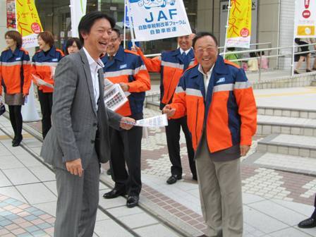 【秋田】日本自動車連盟(JAF)秋田支部(伊藤哲之支部長)は13日、秋田市のJR秋田駅前アゴラ広場で、自動車税制改正を訴える街頭活動を行った。伊藤支部長を始め、秋田県自動車販売店協会の三浦廣巳会長や秋田県自動車整備振興会の関係者など計16...