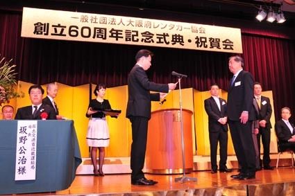 大阪府レンタカー協会は5月28日、大阪市内のホテルで「創立60周年記念式典」を開いた。近畿運輸局の坂野公治局長や全国レンタカー協会の縄野克彦会長をはじめ、近畿各県のレンタカー協会などから多数の来賓を招き、協会の60年の節目を祝った。 近運...