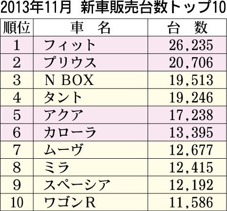 11月の乗用車通称名別販売台数、フィット2カ月連続首位