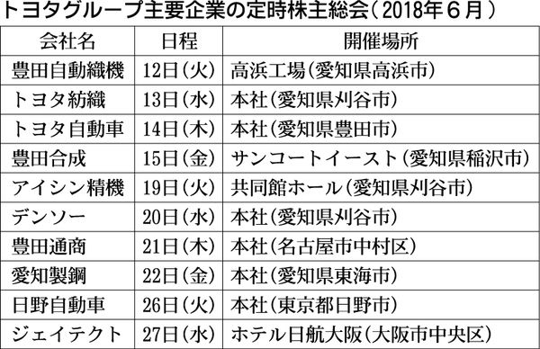 トヨタグループ主要企業の定時株主総会が、きょう12日の豊田自動織機から始まる。14日に開くトヨタ自動車は1月、豊田章男社長が「自動車会社からモビリティーの会社に変えるのが私のゴール」と、事業革新に強い意志を表明。今月にはデンソー、豊田通商...
