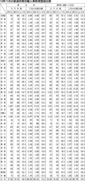 【13年11月の都道府県別輸入車新規登録台数】
