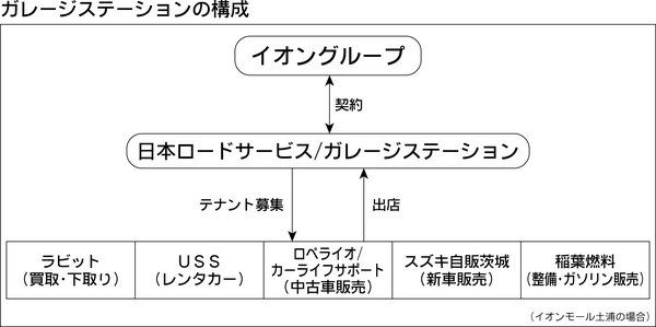 さまざまな自動車関連サービスをショッピングセンター(SC)内で受けられる「ガレージステーション」の1号店が茨城県土浦市のイオンモール土浦の駐車場内にオープンした。新車・中古車販売、車買い取り、レンタカー、整備、ガソリン販売など、複数の企業...