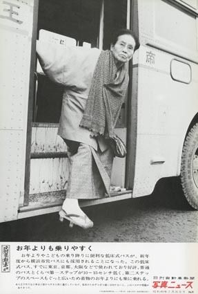 現代の路線バスは、超低床式バスが主流になりつつある。停車時には歩道とほぼ同じ高さに床面が調節され、乗降が容易になっている。また、車内の床面もフラットで移動の不自由もない。ところが、写真の1973年当時は、これでも低床式バスと位置づけられて...
