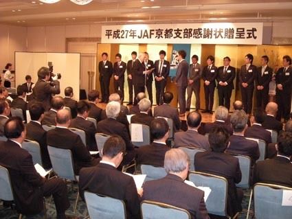 【京都】日本自動車連盟(JAF)京都支部(森川莫臣支部長)は、2月23日に京都市内のホテルで「平成27年JAF京都支部感謝状贈呈式・感謝の会」を開催した。136人が参加し、昨年の会員獲得に貢献した新車ディーラーや営業スタッフを表彰し、その...