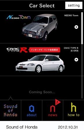 ホンダは31日、スマートフォン(高機能携帯電話)用アプリ2種類を開発し、11月中旬から無料で提供を始めると発表した。 ホンダ車のエンジン音を再現する「サウンドオブホンダ」は、センサーで走行状態を検知し、加速などに合わせて音が変化する。当初...