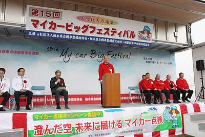 「澄んだ空 未来に届けるマイカー点検」をメーンスローガンにマイカービッグフェスティバルが10月28日、宇都宮市新里のろまんちっく村にぎわい広場で開催され、9千人が来場した。栃木県自動車整備振興会・同商工組合(荒川光弘会長・理事長)と同青年...