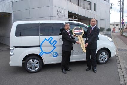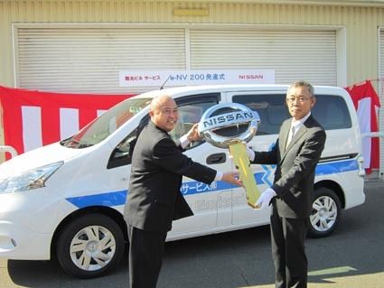 【福島】日産自動車は22日、福島民友新聞社(五阿弥宏安社長)に商用電気自動車(EV)「e―NV200」1台を無償貸与(3年間)した。日産が全国的に展開する電気自動車活用事例創発事業の一環。同日に福島市内の福島民友新聞社本社で「貸与式」が開...