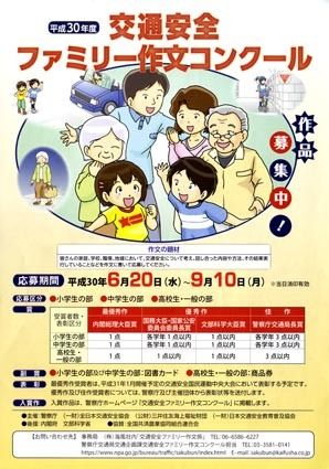 警察庁は、2018年度の交通安全ファミリー作文コンクールの募集を開始したは募集ポスター。家庭や学校、職場、地域などで交通安全についての考えや実行していることなどを1200字の作文として応募する。小学生、中学生、高校生・一般の3部門で、それ...