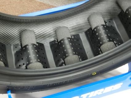 東洋ゴム工業は29日、車内騒音の一つであるタイヤ空洞共鳴音を低減する技術「トーヨーサイレントテクノロジー」を開発したと発表した。多孔フィルムをタイヤ内部に山なり形状に配置するデバイスで、フィルムの穴に空気が通ることで共鳴音の発生を抑える仕...