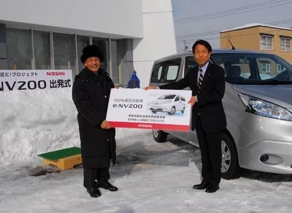 【当別】日産自動車と日産プリンス札幌(樋口明宏社長)は「電気自動車(EV)活用事例創発事業」として商用EVバン「e―NV200」を当別町(宮司正毅町長)に3年間無償貸与した。同町は夜間作業などの電源供給車として活用する 当別町役場で行われ...