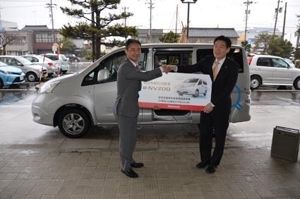日産自動車と日産サティオ富山、「e―NV200」を立山町に無償貸与