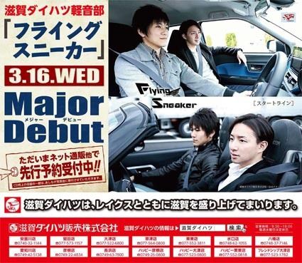 滋賀ダイハツの後藤敬一社長が待望のCDデビュー!。会社の勉強会の席でデビューライブを開催―。滋賀ダイハツの軽音部で結成するイケメンバンド「フライングスニーカー」が16日にポニーキャニオンからメジャーデビューすることになった。メンバーは二宮...