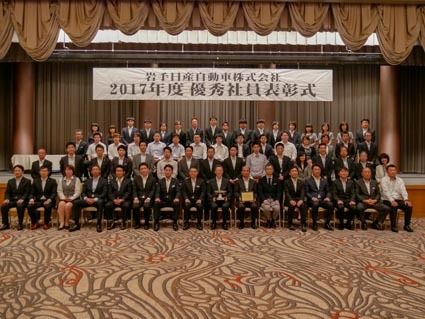 【花巻】岩手日産(千葉理平社長)はこのほど、花巻市内で「2017年度優秀社員表彰式」を開催した。7部門で表彰を行い、優秀な成績を上げた社員と店舗の功績をたたえた。 表彰式では千葉社長が全表彰者に個々の実績に対し祝いの言葉を述べた後、「17...