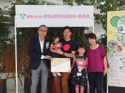 ○…静岡トヨペット(平光敬和社長)は1日に誕生した同社初のマスコットキャラクターの名前を「キラッキ」と決定し8日に命名式を御殿場店(御殿場市)で開催した。命名者は裾野市在住の柏木結菜ちゃん(右から2人目)で、キャラクターを見て「星の杖を持...