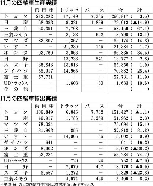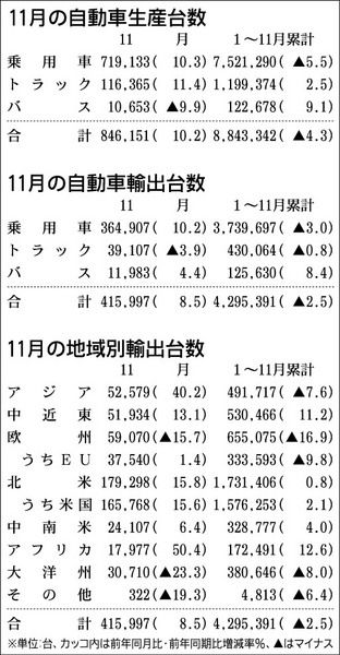 11月の国内生産台数