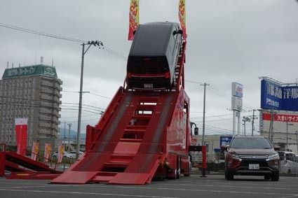 【石巻】宮城三菱(千田茂穂社長)はこのほど、石巻市の石巻店で「4WD登坂45度体験イベントin石巻」を開催した。体験車両は「デリカD:5」と「エクリプスクロス」を用意。来場者はプロドライバー小暮吉則氏の運転で同乗体験を行った。当日は、約1...
