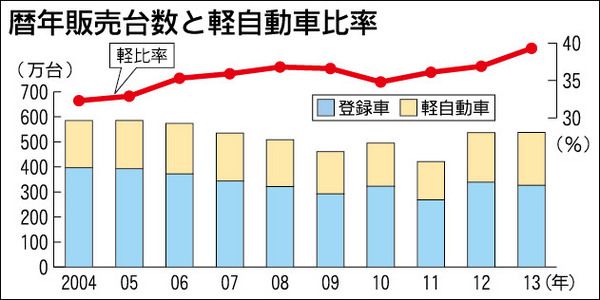 2014年の国内新車市場は、軽自動車比率が全体の4割を超えるのが確実な情勢で、軽販売は2年連続で過去最高を更新する可能性が高い。4月の消費税率引き上げ前となる3月までに駆け込み需要の盛り上がりが予測される一方、その後の反動減は免れないとみ...