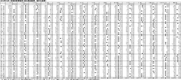 【2012年10月 地域別新車販売(軽、海外生産車含む)】