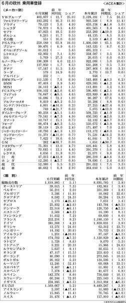 2018年上期(1~6月)のメーカー別欧州登録台数は、フォルクスワーゲン(VW)グループが前年同期比7・5%増の212万8101台で首位を独走。上期としての台数が200万台を超えたほか、シェアも同1・1ポイント増の24・5%に拡大した。P...