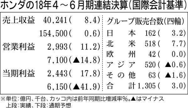 ホンダは31日、2019年3月期(国際会計基準)の見通しを修正して発表した。北米での四輪車販売の減少などを見込み、売上高(売上収益)は前回見通しより1500億円減の15兆4500億円へ下方修正。一方で利益面は二輪車の販売増加やコストダウン...