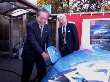 【津】日産自動車と三重県紀宝町は12月25日、電気自動車(EV)と電力供給システムを無償提供する「EV&LEAF to Home設置式典」を、道の駅「紀宝町ウミガメ公園」で実施した。西田健紀宝町長や三重日産の岩井純朗社長をはじめ関係者が出...