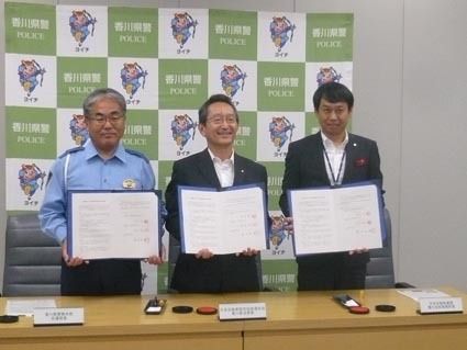 【高松】日本自動車販売協会連合会香川県支部(本多武治支部長)と日本自動車連盟(JAF)香川支部(同支部長)は、香川県警察本部交通部(岡田知春部長)と安全運転サポート車(サポカー)の普及啓発活動に関する協定書を結んだ。 サポカー普及啓発に弾...