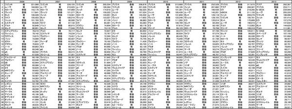 06年以降の乗用車車名別新車販売