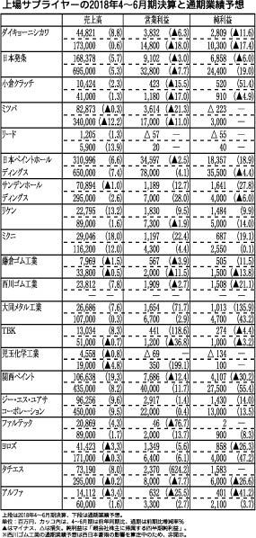 【上場サプライヤーの2018年4~6月期決算と通期業績予想】