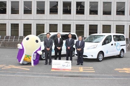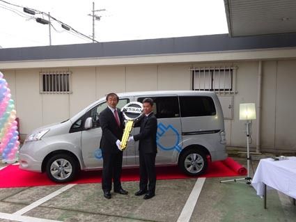 近畿地区でも日産自動車が系列ディーラーとともに地方自治体へ電気自動車(EV)「e―NV200」を貸し出す動きが相次いでいる。 日産但馬(西川博之社長)は16日、朝来市に3年間無償でe―NV200を貸与した。車両貸与式を同市庁舎で実施し、近...