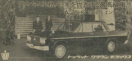 連載「広告で見る北海道 自動車ストーリー」(1)1966年 大衆車の発売相次ぐ/庶民の憧れ、トヨタ最上級車「トヨペット クラウン デラックス」
