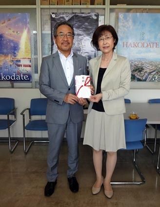 【函館】自販連函館支部(河村祥史支部長)はこのほど、6月に開催した会員合同イベント「大中古車博」の売り上げの中から22万6千円を熊本地震災害義援金として日本赤十字社に寄付した。 河村支部長と中川純吉専務が函館市役所を訪れ、日本赤十字社北海...