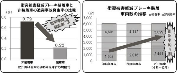 国土交通省中部運輸局が全国で初めてまとめた大型貨物自動車の衝突被害軽減ブレーキ装着効果は、同ブレーキ装着車の追突事故発生率が非装着車の3分の1となり、事故削減効果が認められる結果となった。この調査は同運輸局管内5県(愛知、静岡、岐阜、三重...
