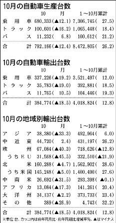 【2012年10月の自動車生産・輸出・地域別台数】