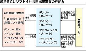デンソー、アイシン精機、アドヴィックス(大竹哲也社長、愛知県刈谷市)、ジェイテクトは27日、自動運転・車両運動制御などのための統合ECU(電子制御ユニット)ソフトウエアを開発する共同出資会社を設立することで合意したと発表した。デンソーが6...