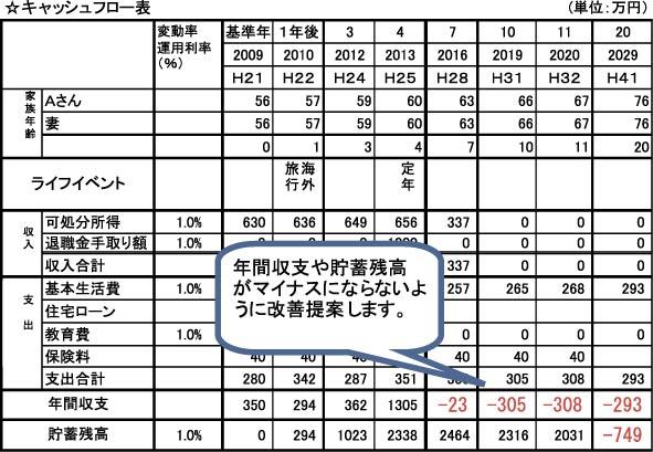 お客さまへの聞き取りで得られた情報を基に現状分析します。基本的に四つの指標で分析を行います。企業会計にも適用できる(1)キャッシュフロー(2)個人バランスシート(3)保障(4)税金に分け、相談者自身が意識していなかった問題点なども浮き彫り...