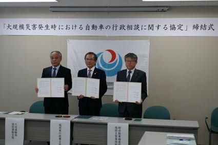 福岡運輸支局(坂本正弘支局長)と軽自動車検査協会福岡主管事務所(竹下博喜所長)、福岡県行政書士会(野田昌利会長)は「大規模災害発生時における自動車の行政相談に関する協定」を締結した。これに伴い21日、福岡運輸支局で調印式を行った。 同協定...