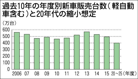 自動車メーカーやディーラーで、国内の新車需要が2020年以降に年400万台まで縮小することを想定して経営戦略を練り直す動きが出始めている。トヨタ自動車が販売会社に「10年後を見て経営を舵取りしてほしい」(同社首脳)と要請しており、販売現場...