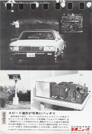 自動速度違反取締装置―「オービス」という製品名はラテン語の「眼」からとったそうだ。写真の上半分はオービスが捉えた映像で、車両のほか撮影時刻や場所などが同時に写し込まれている。当時は銀塩フィルムを用い、フィルムの交換が間に合わないと、撮られ...