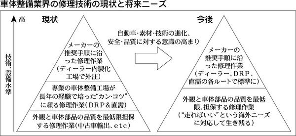 自動車ユーザーがクルマを長く、安全に使用するために必要不可欠な損害修復。ただ、その主役となる車体整備は車検制度や指定整備工場制度に基づいて厳格に運営される分解整備と異なり、法律の明確な規定がない。消費者の目に見える技術の差は「外観のみ」と...